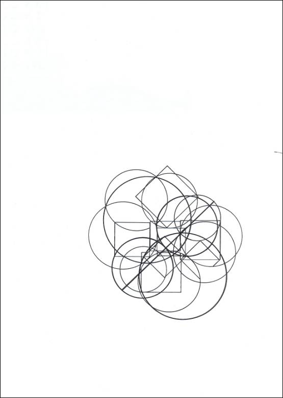 -Redrawn for publication here August 2OO1. I had always found that the picture I called No.2 in this series failed to live up to its fellows and including it here for completeness of the series sat ill with me, so I revised it. This is something I rarely do. My works are not ‘in progress’, in flux as it were waiting to be given so more perfect future form. My Works express their moment. They could stay unfinished a while, but my ‘language’ of shape, importantly syntactic and Not semantic, evolves and that is how they express their moment. If I constantly vacillate over the finality or closure of any work I would never complete a work. Taken it to its logical extreme and since I am only interested in the Ideal picture I should only produce one picture and maybe not even that. My August 2OO1 revision, I Contemplate 2a sympathetically overposes a Canonic cloverleaf in a slightly bolder line. It is fixed by a 45 degree line linking 3 intersections and anchored on an existing central square. I then rotated the whole thing through 90 degrees. My revision is therefore not pastiche, as I write it was only 2 years ago but I think the progression and personal development here are important enough for me to note, that 2 years ago I could not have drawn this. |