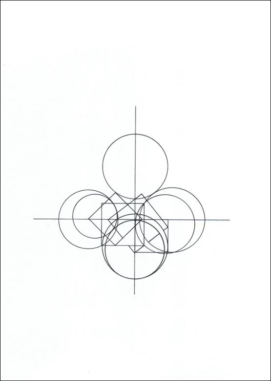 I Contemplate. 4. 841 x 1189mm Black line mounted print No.4 in a series of Twelve - January 1999. A closer integration of the circles to the squares, with a