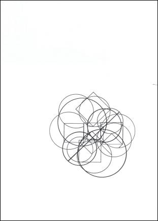 -Redrawn for publication here August 2OO1. I had always found that the picture I called No.2 in this series failed to live up to its fellows and including it here for completeness of the series sat ill with me, so I revised it. This is something I rarely do. My works are not ‘in progress’, in flux as it were waiting to be given so more perfect future form. My Works express their moment. They could stay unfinished a while, but my ‘language’ of shape, importantly syntactic and Not semantic, evolves and that is how they express their moment. If I constantly vacillate over the finality or closure of any work I would never complete a work. Taken it to its logical extreme and since I am only interested in the Ideal picture I should only produce one picture and maybe not even that. My August 2OO1 revision, I Contemplate 2a sympathetically overposes a Canonic cloverleaf in a slightly bolder line. It is fixed by a 45 degree line linking 3 intersections and anchored on an existing central square. I then rotated the whole thing through 90 degrees. My revision is therefore not pastiche, as I write it was only 2 years ago but I think the progression and personal development here are important enough for me to note, that 2 years ago I could not have drawn this. |