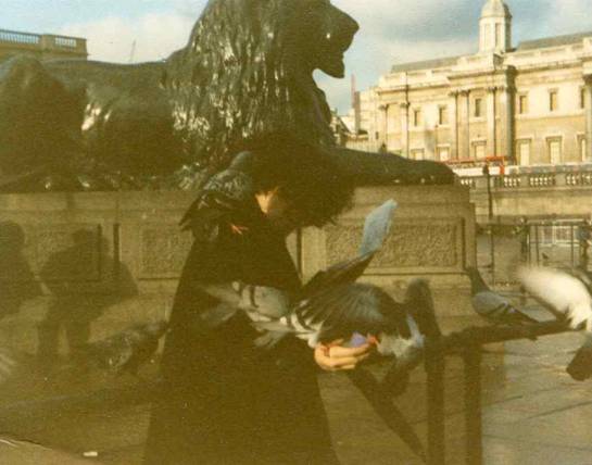 The Artist in Trafalgar Square with pigeons - Dec. 1985 |